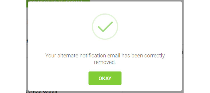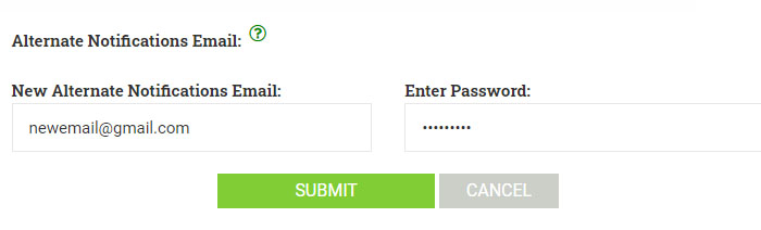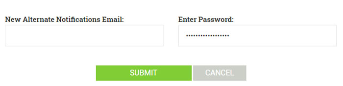 To remove the alternate notifications email, simply keep the email blank, fill in the password and hit the submit button.