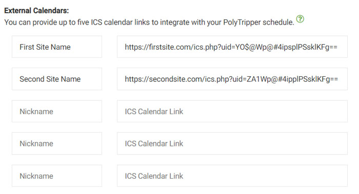 Very important! If you work on another platform and you have integrated their calendar into Google Calendar, it will NOT work to simply integrate the Google Calendar into PolyTripper. You will need to put the ICS links of the calendars of the other platforms into PolyTripper.