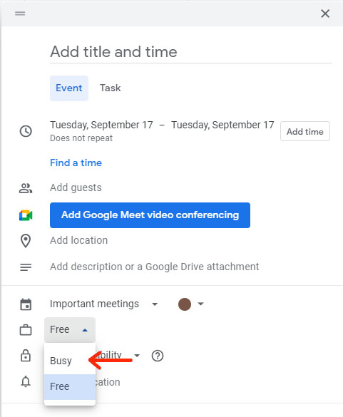 Tip: With Google Calendar integration, booked times are synced across your calendars automatically, eliminating this manual step.