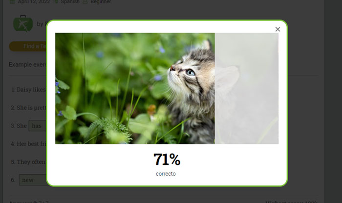 Si quieres agregar una imagen o un archivo de audio a tu ejercicio, tienes que contactarnos, darnos la imagen o el archivo de audio y lo agregaremos a tu ejercicio. Solo puedes agregar una imagen y/o archivo de audio por ejercicio.