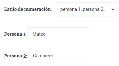 ejemplo de diálogo hemos elegido el estilo de numeración con nombres (Mateo y el camarero), en lugar del predeterminado 1, 2, 3.