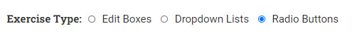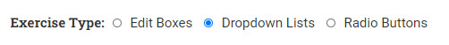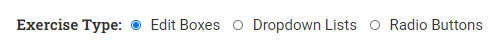 The three types of exercises you can create, are exercises with edit boxes, dropdown lists and radio buttons. We can try to explain to you what these are by going into