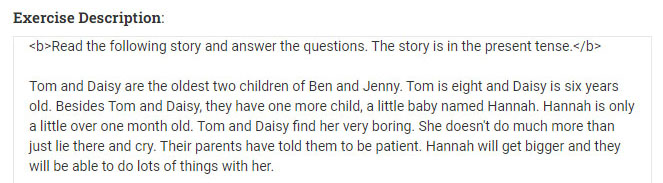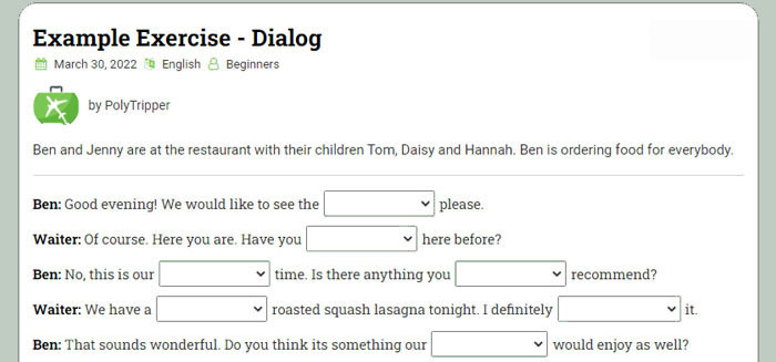 In the "Exercise" part you will put the actual exercise sentences. We will explain to you in detail how to do this in the rest of this tutorial.