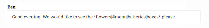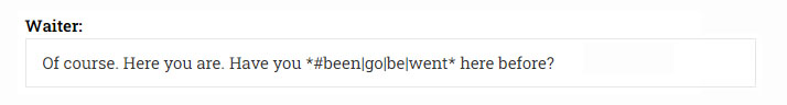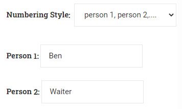 dialog example we've chosen the numbering style of two people (Ben and the waiter), instead of the default 1, 2, 3.