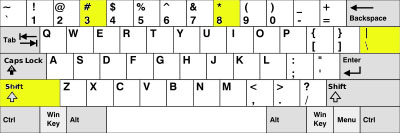 Three characters are used to create the exercises: stars *, vertical bars | and pound signs #. In the image below we show you where to find them on a Qwerty keyboard.