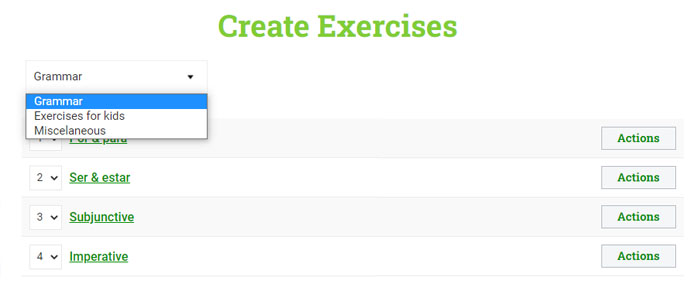 You can create exercises for any of the languages you teach. If you teach more than one language, you can select for which language you are creating the exercise.