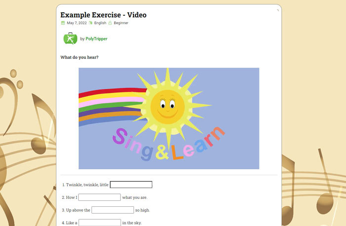 You can also decide whether the exercise is meant for beginner, intermediate or advanced students.