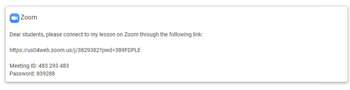 Once you are signed up for the group lesson, the communication method for the lesson will be posted on the Group Lesson page. You will see the information appear 15 minutes before the start of the lesson, if the minimum number of participants has been reached. This information will only be visible to registered participants.