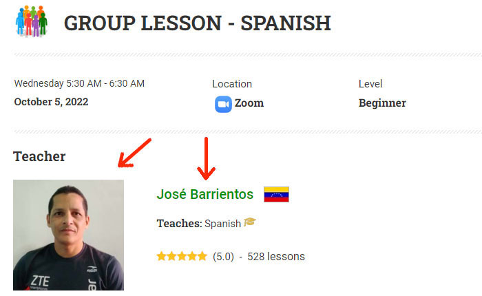 If anything is not clear and you have a question, don't hesitate to contact either the teacher or us. To contact the teacher, just click on the image of the teacher or on the teacher's name, which will bring you to the teacher's profile page.