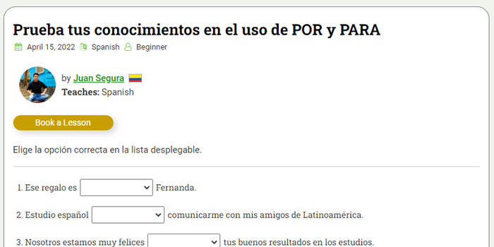 On PolyTripper we provide teachers the tools to create interactive exercises. These can be grammar exercises or exercises with images, videos or audios. You can request to have your exercise placed on our Exercises page where students will be able to find it. You can also share links to your exercise on social media. Your exercise will include a link to your teacher profile and a book a lesson button. Creating exercises is really not that difficult. We've created a Tutorial that explains everything and you can always contact us if you have any questions.