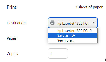 You can then choose either the printer you want to use to print it out on, or save it as a PDF in case you need to email it to someone.