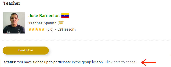 For group lessons the cancelation option will be visible right on the page where you book the lesson. When it's less than 48 hours before the lesson, the option will disappear.
