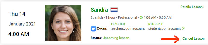 Students can also cancel the lesson after it has been accepted by the teacher. If the lesson is still more than 48 hours away, the lesson can be canceled by the student without any fees. All credits will be returned to the student's PolyTripper account. If the lesson was part of a package, the lesson will be returned to the package.