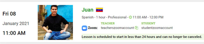 Lessons can no longer be canceled 24 hours before the start of the lesson.