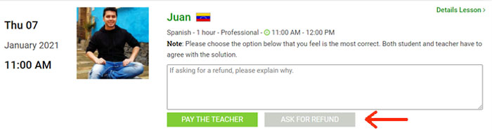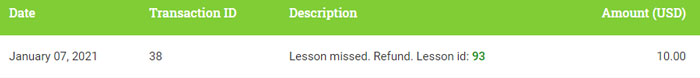 Please note that refunds are always in the form of credits that are returned to your PolyTripper account. You will be able to use these credits to take lessons with our teachers. We do not refund money back to your PayPal or bank account*.