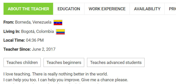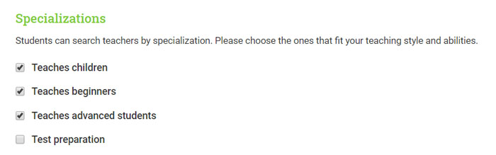 These specializations will show up as tags in your teacher profile.