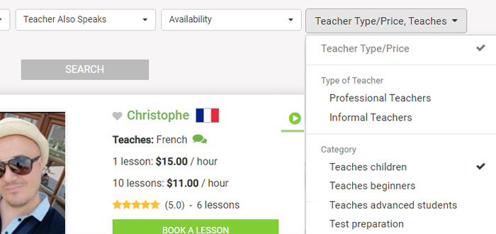 If you teach more than one language, you can choose them separately for each language.