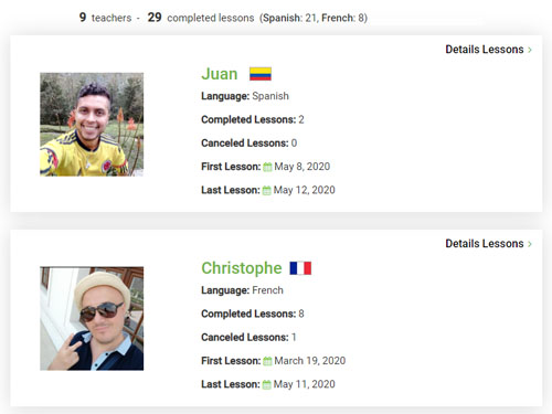 the teachers you've had lessons with. It will have the dates of the first and the last lesson with the teacher and will also show the number of