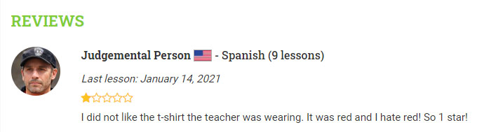 The review is in the form of a written opinion. A student can only leave one review per teacher. However, each lesson the student gets the option to modify their rating and review.