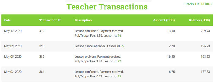 When you teach lessons on this website, you will earn credits. One credit is equal to one US dollar. For every lesson you teach, you will receive 95% of