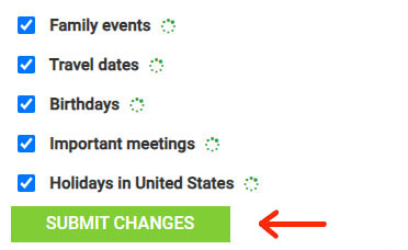 After having selected the calendars you want to integrate and clicking on the button, you will see the pending status appear behind the calendar names.