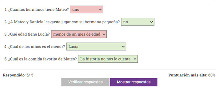 Después de que el estudiante intente responder todas las preguntas y haya hecho clic en el botón Verificar respuestas, mostraremos cuáles de