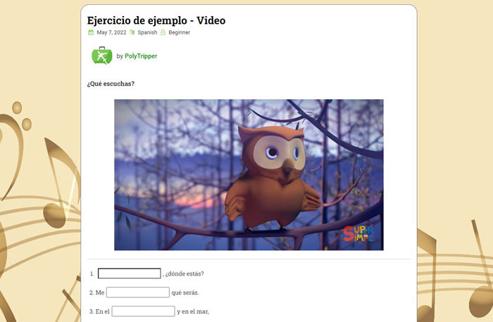 En la parte "Ejercicio" pondrás las frases del ejercicio. Te explicaremos en detalle cómo hacer esto en el resto de este tutorial.