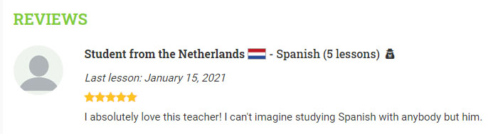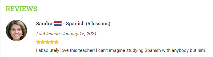 The review is in the form of a written opinion. A student can only leave one review per teacher. However, each lesson the student gets the option to modify their rating and review.