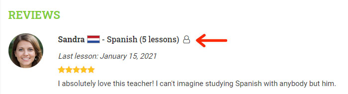 When teachers look at the reviews in their own teacher profile, they will see an additional icon behind the name of the reviewer.